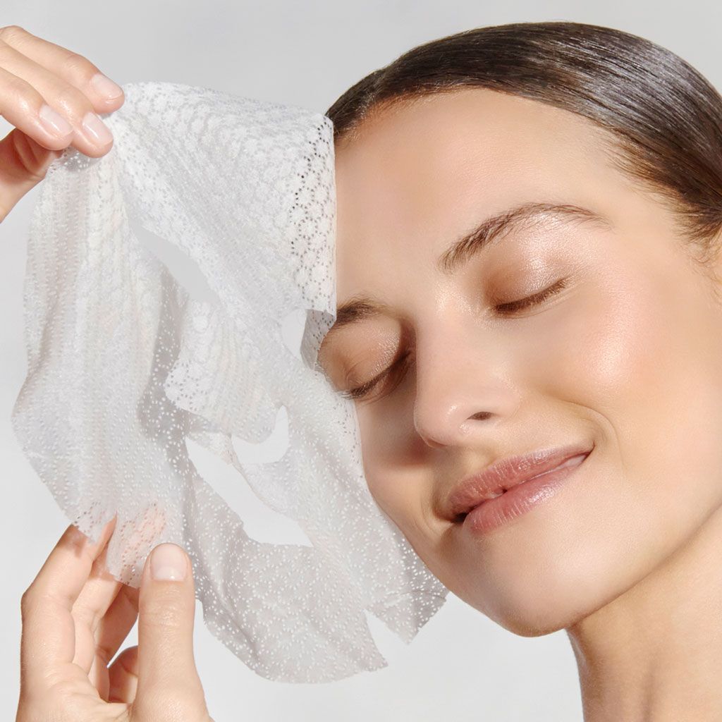 取下面膜后,将剩余精华液轻柔按摩至皮肤吸收焕现美好肌肤状态。