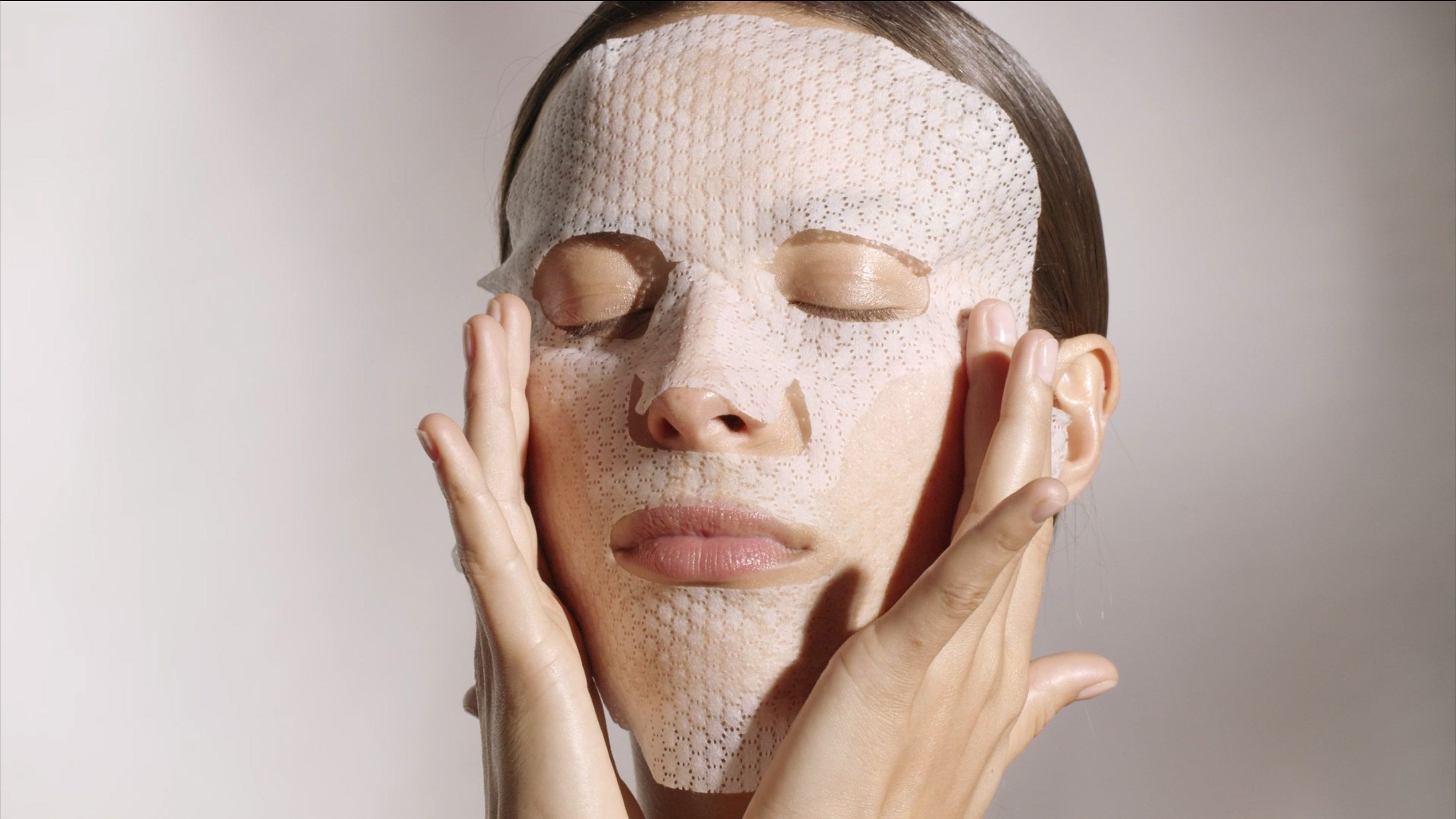 大米绒膜布可吸收自身重量约10倍的精华液。