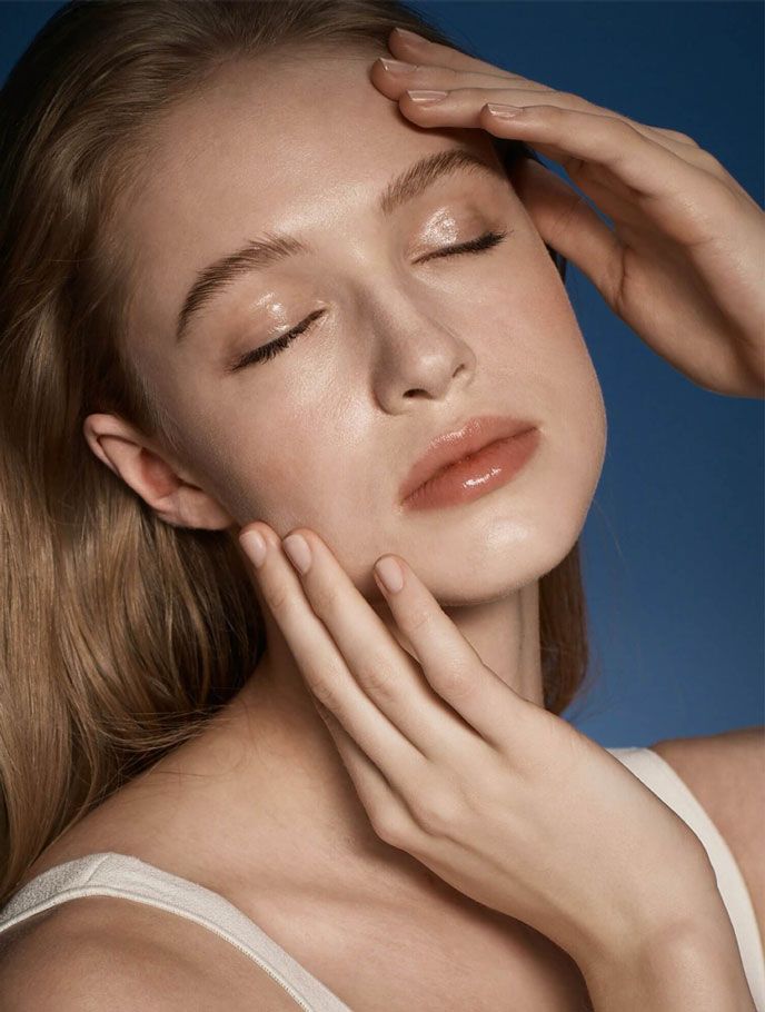 精华、眼霜后取适量精华乳于掌心温热焕活。