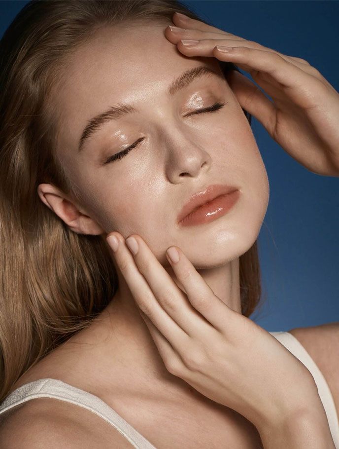 精华、眼霜后取适量同系列精华乳于掌心,涂抹于面部,按压吸收。
